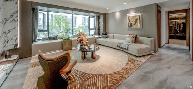 人车分流、园林五重铺装,在2个足球场大小的约1.1万㎡园林中以度假景观手法造园。